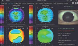 Os mapas fornecem curvatura sagital, curvatura tangencial, mapa de elevação, poder de refração e valor Kÿ/Kÿ/Km/Astig/Ecc.